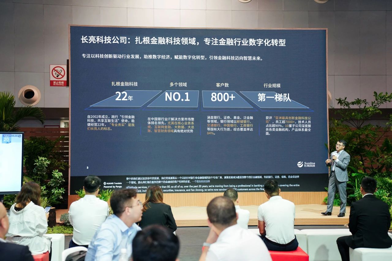 本次大會上,長亮科技與華為云簽署了戰略合作協議,并發布了金融主機核心現代化聯合解決方案。公司數金副總裁唐偉在“長亮科技聯合華為云Stack共建金融主機核心現代化解決方案”的開放演講中,詳細闡述了該方案的先進架構和價值優勢,并表示這一合作將賦能金融機構核心系統的全面升級。