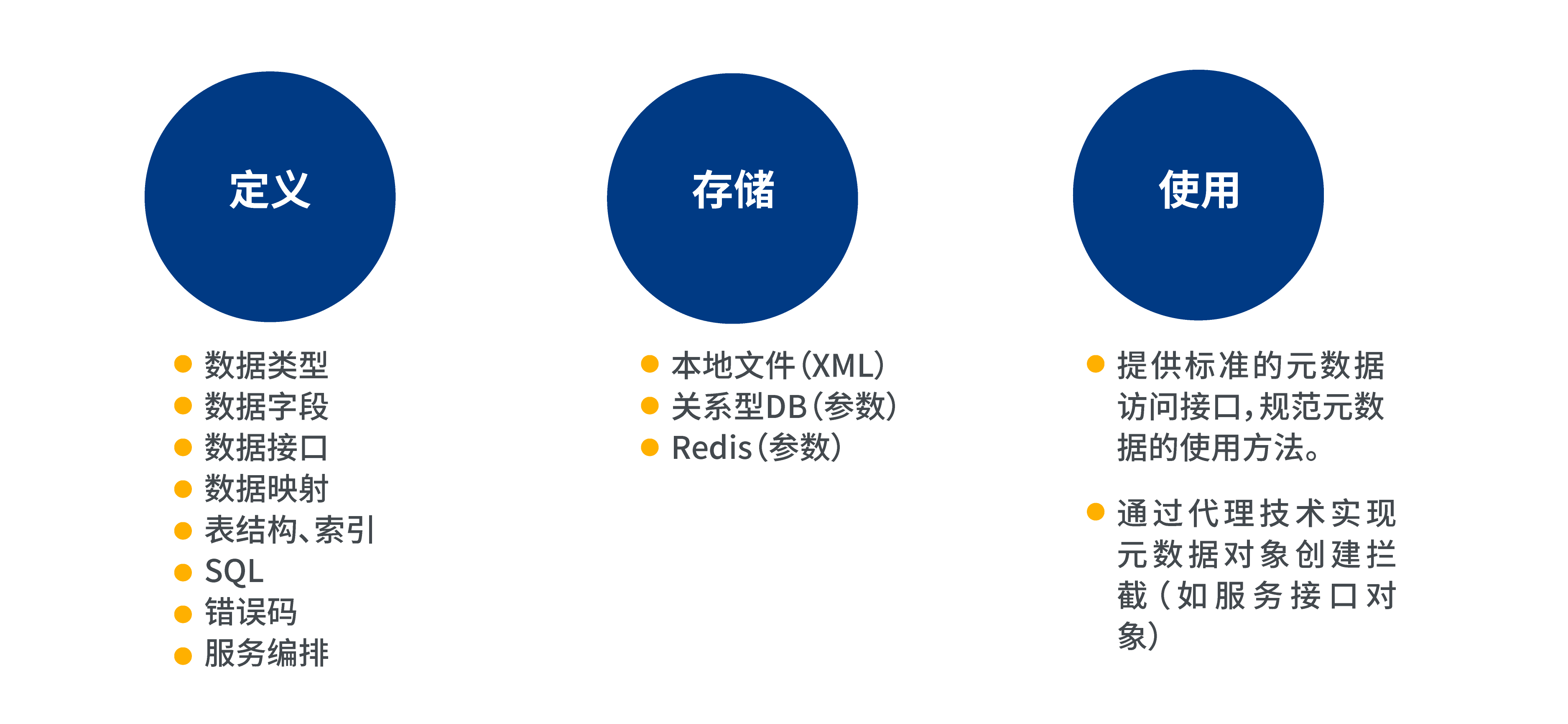 元數(shù)據(jù),向應用組件提供類型、字段、接口、服務編排、表結構、SQL、錯誤碼等數(shù)據(jù)的定義、存儲和使用。元數(shù)據(jù)的最大價值是支撐標準的落地,讓應用組件的開發(fā)標準化。