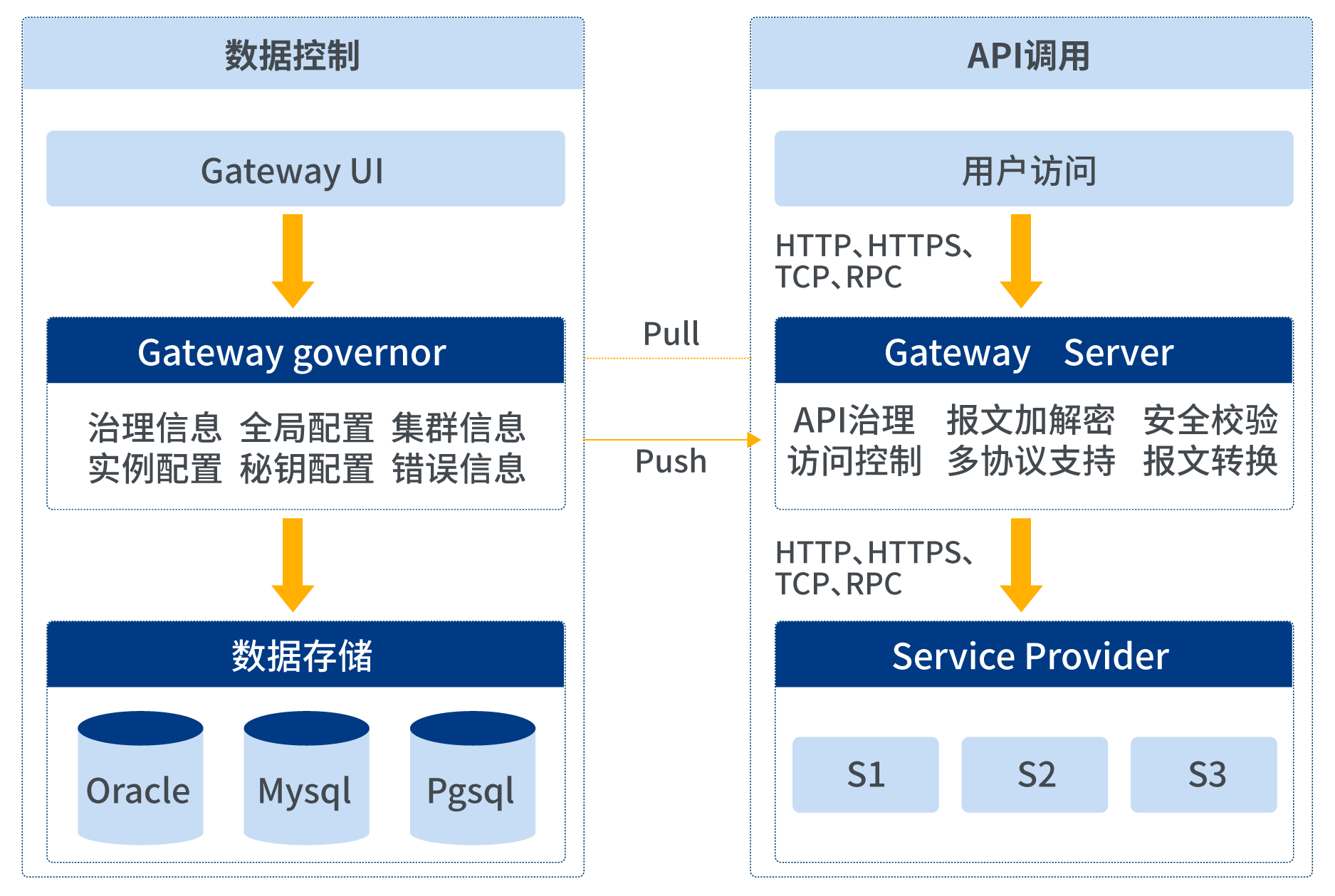 ? 管控端主要作用為管理網關配置、UI交互、推送數據到網關運行端等,管控端和服務端分工明確,讓真正負責處理請求的網關運行端,爭取資源最大化。
