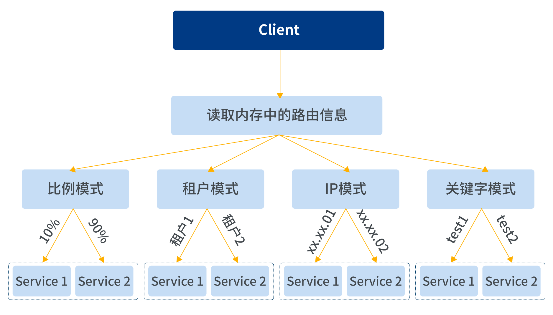 ? 關鍵字模式:通過在請求頭或者查詢參數中的關鍵字進行路由。